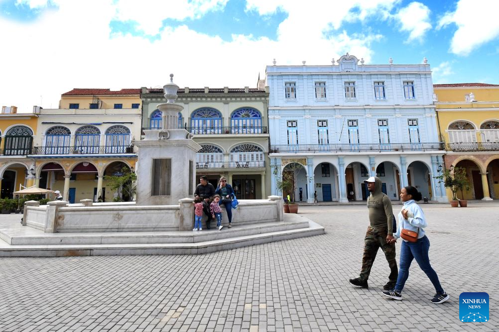 LA HABANA, 23 febrero, 2026 (Xinhua) -- Una pareja camina por una plaza, mientras una familia se encuentra sentada junto a una fuente de agua, en La Habana, capital de Cuba, el 23 de febrero de 2026. (Xinhua/Joaquín Hernández)