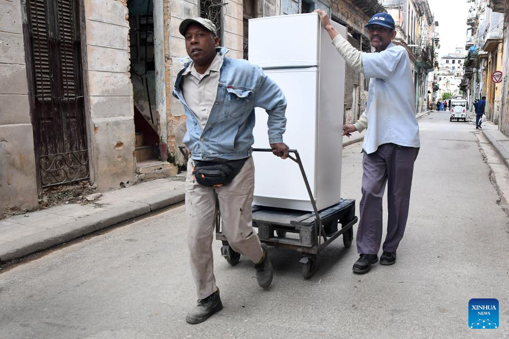 LA HABANA, 23 febrero, 2026 (Xinhua) -- Dos hombres transportan un refrigerador en una carretilla por una calle, en La Habana, capital de Cuba, el 23 de febrero de 2026. (Xinhua/Joaquín Hernández)