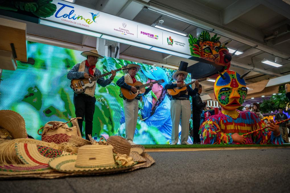 Imagen del 25 de febrero de 2026 de personas interpretando música colombiana durante la 45ª edición de la vitrina turística de la Asociación Colombiana de Agencias de Viajes y de Turismo (ANATO), en Bogotá, capital de Colombia. La 45ª edición de la vitrina turística de ANATO comenzó el miércoles con el Caribe mexicano como región internacional invitada de honor y el departamento colombiano de Córdoba como región nacional destacada. (Xinhua/Andrés Moreno)