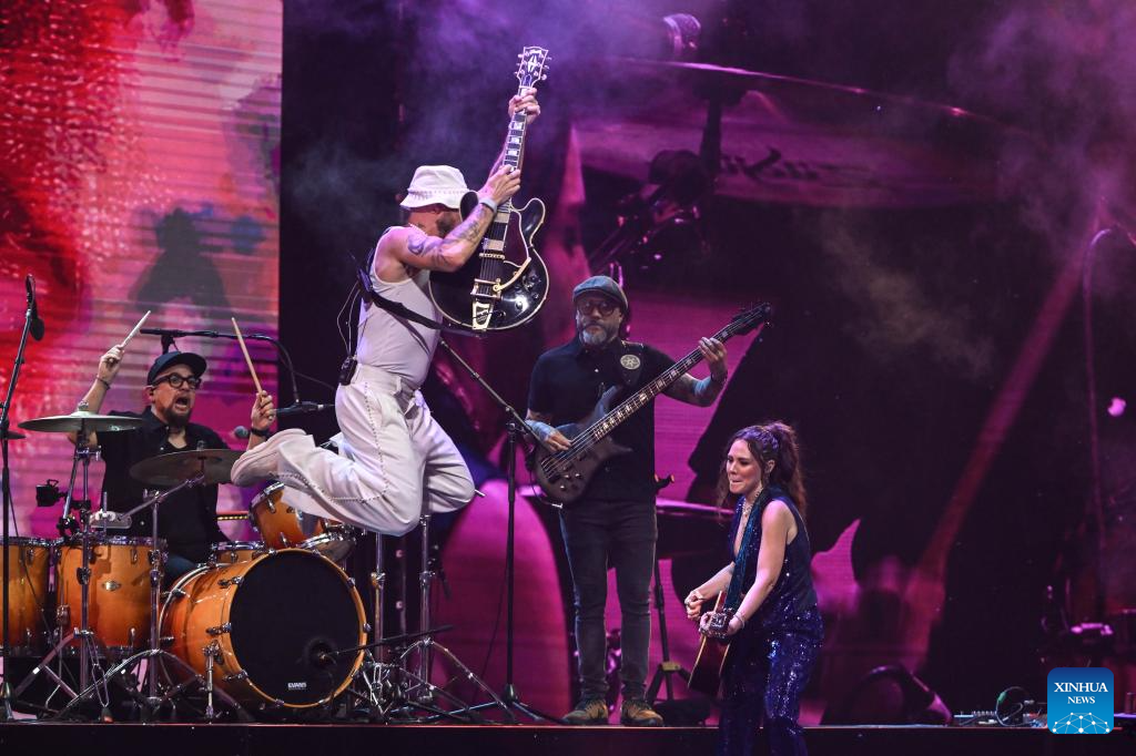 VIÑA DEL MAR, 27 febrero, 2026 (Xinhua) -- Imagen del 24 de febrero de 2026 del dueto mexicano, Jesse & Joy, realizando una presentación durante la 65ª versión del Festival Internacional de la Canción de Viña del Mar, en Viña del Mar, Chile. (Xinhua/Jorge Villegas)