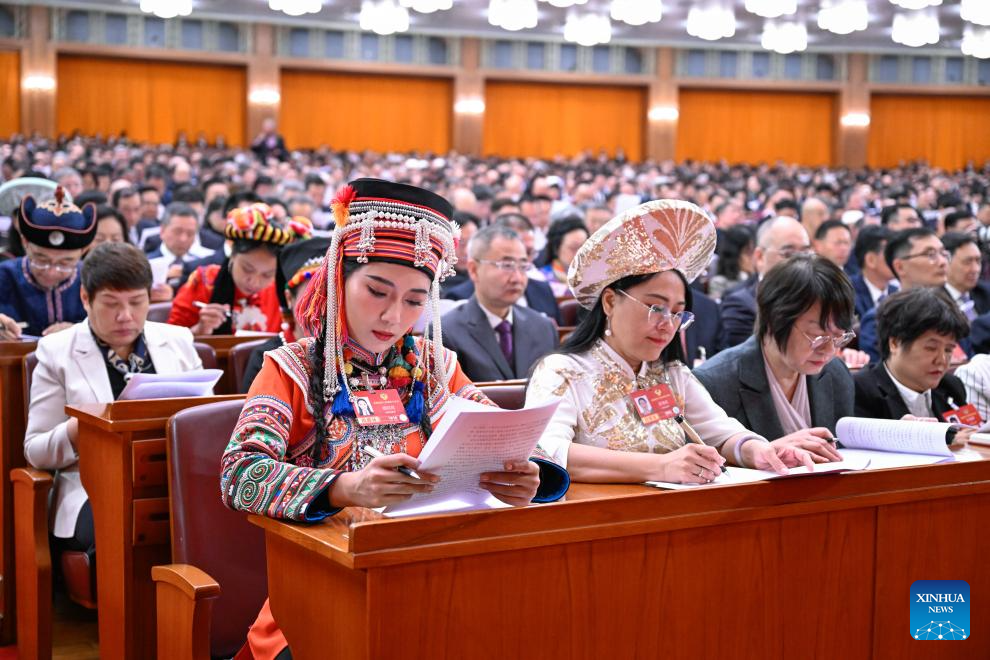 El presidente chino, Xi Jinping, junto con otros líderes del Partido y del Estado, incluyendo a Li Qiang, Zhao Leji, Cai Qi, Ding Xuexiang, Li Xi y Han Zheng, asistió a la reunión inaugural de la cuarta sesión del XIV Comité Nacional de la CCPPCh en el Gran Palacio del Pueblo.