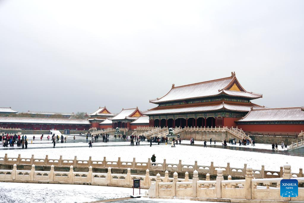 BEIJING, 5 marzo, 2026 (Xinhua) -- Imagen del 5 de marzo de 2026 de una vista del Museo del Palacio luego de una nevada, en Beijing, capital de China. Beijing fue testigo de una nevada primaveral del miércoles al jueves. (Xinhua/Xie Han)