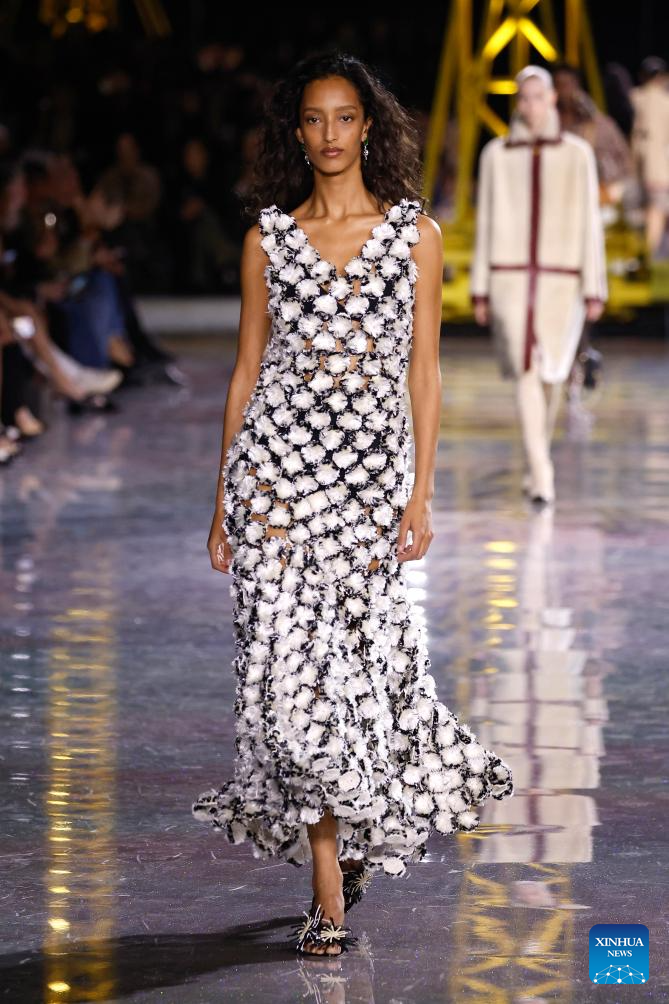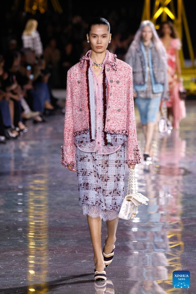 PARIS, 10 marzo, 2026 (Xinhua) -- Imagen del 9 de marzo de 2026 de una modelo presentando una creación de las colecciones listas para usarse Otoño/Invierno 2026-2027 de Channel, durante la Semana de la Moda de París, en París, Francia. (Xinhua/MeetEurope)