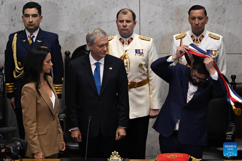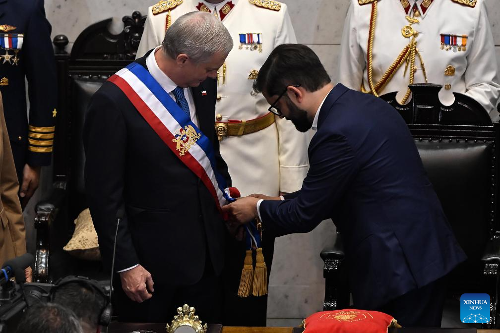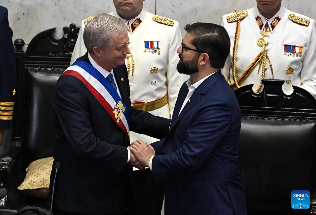 SANTIAGO, 11 mar (Xinhua) -- José Antonio Kast Rist asumió hoy de manera oficial la Presidencia de Chile para el período 2026-2030, de manos del saliente mandatario Gabriel Boric (2022-2026), en una ceremonia realizada en el Salón de Honor del Congreso Nacional, en la histórica ciudad porteña de Valparaíso.