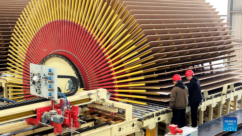 BEIJING, 16 marzo, 2026 (Xinhua) -- Trabajadores laboran en una línea de producción de tableros de una empresa de productos de madera, en el distrito de Pingyi de la ciudad de Linyi, en la provincia de Shandong, en el este de China, el 16 de marzo de 2026. El valor agregado de la producción industrial de China, un importante indicador económico, registró un aumento interanual del 6,3 por ciento en los primeros dos meses de 2026, según datos publicados el lunes por el Buró Nacional de Estadísticas. (Xinhua/Wu Jiquan)