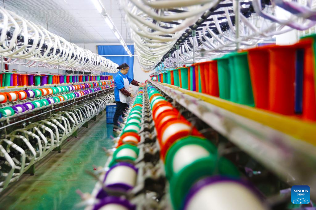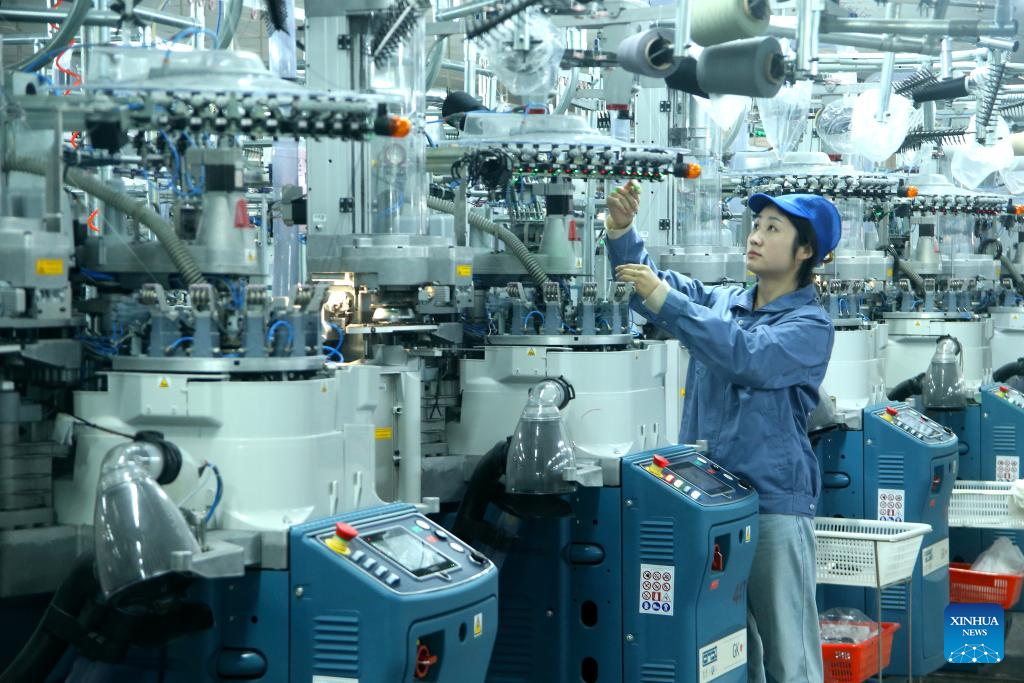 BEIJING, 16 marzo, 2026 (Xinhua) -- Un trabajador labora en la línea de producción de una empresa de calcetines, en el distrito de Qingdao, en la provincia de Shandong, en el este de China, el 16 de marzo de 2026. El valor agregado de la producción industrial de China, un importante indicador económico, registró un aumento interanual del 6,3 por ciento en los primeros dos meses de 2026, según datos publicados el lunes por el Buró Nacional de Estadísticas. (Xinhua/Liang Xiaopeng)