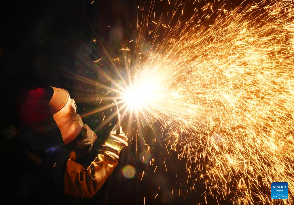 BEIJING, 16 marzo, 2026 (Xinhua) -- Un trabajador realiza trabajos de soldadura en una empresa siderúrgica en una zona de desarrollo económico, en el distrito de Hengshan de Hengyang, en la provincia de Hunan, en el centro de China, el 16 de marzo de 2026. El valor agregado de la producción industrial de China, un importante indicador económico, registró un aumento interanual del 6,3 por ciento en los primeros dos meses de 2026, según datos publicados el lunes por el Buró Nacional de Estadísticas. (Xinhua/Cao Zhengping)