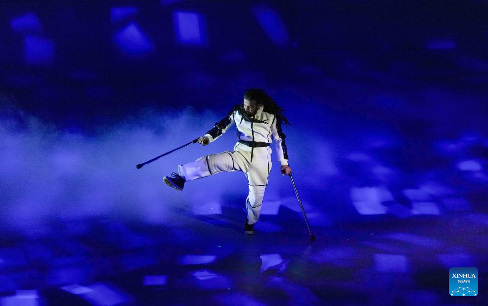 CORTINA D'AMPEZZO, 16 marzo, 2026 (Xinhua) -- Imagen del 15 de marzo de 2026 de un artista realizando una presentación durante la ceremonia de clausura de los Juegos Paralímpicos de Invierno Milán-Cortina 2026, en Cortina D'ampezzo, Italia. (Xinhua/Wang Kaiyan)