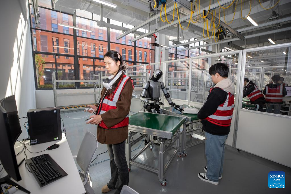 ZIGONG, 16 marzo, 2026 (Xinhua) -- Imagen del 4 de marzo de 2026 de empleados entrenando a un robot humanoide para recolectar objetos, en el Centro de Recopilación y Pruebas de Datos Multimodales de Robots Humanoides de Sichuan, en la ciudad de Zigong, en la provincia de Sichuan, en el suroeste de China. Mediante la simulación de escenarios industriales reales, el centro entrena a robots para que realicen acciones básicas como "agarrar, sujetar, recoger y colocar", acumulando enormes cantidades de datos de alta calidad. (Xinhua/Ye Weidong)