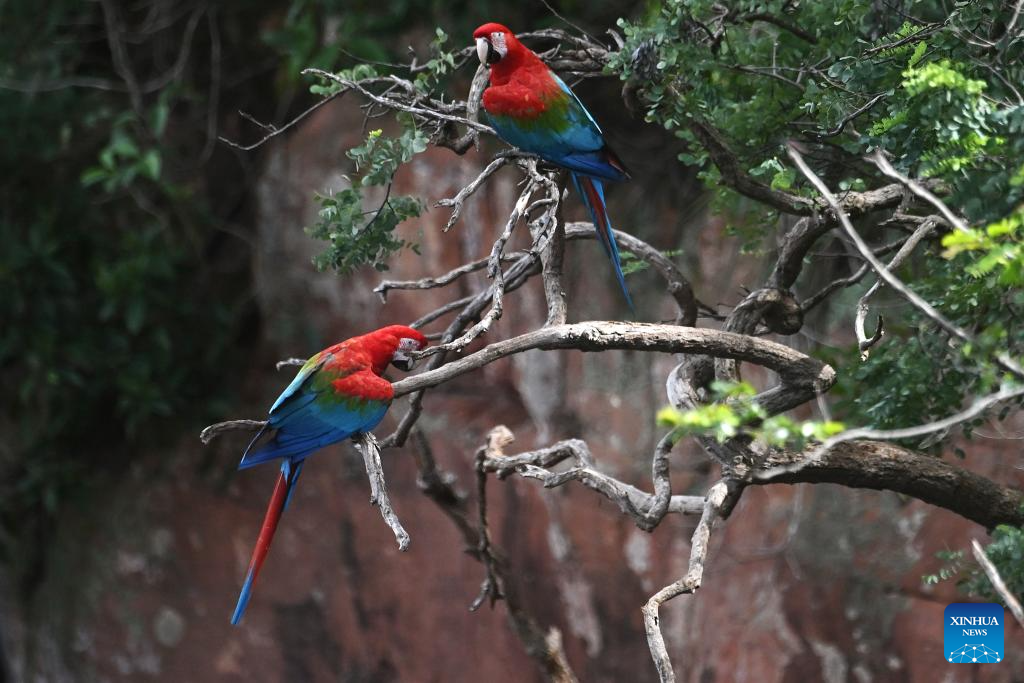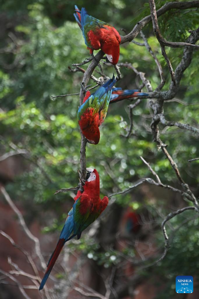 Guacamayas bandera en el estado de Mato Grosso do Sul, Brasil | Spanish.xinhuanet.com