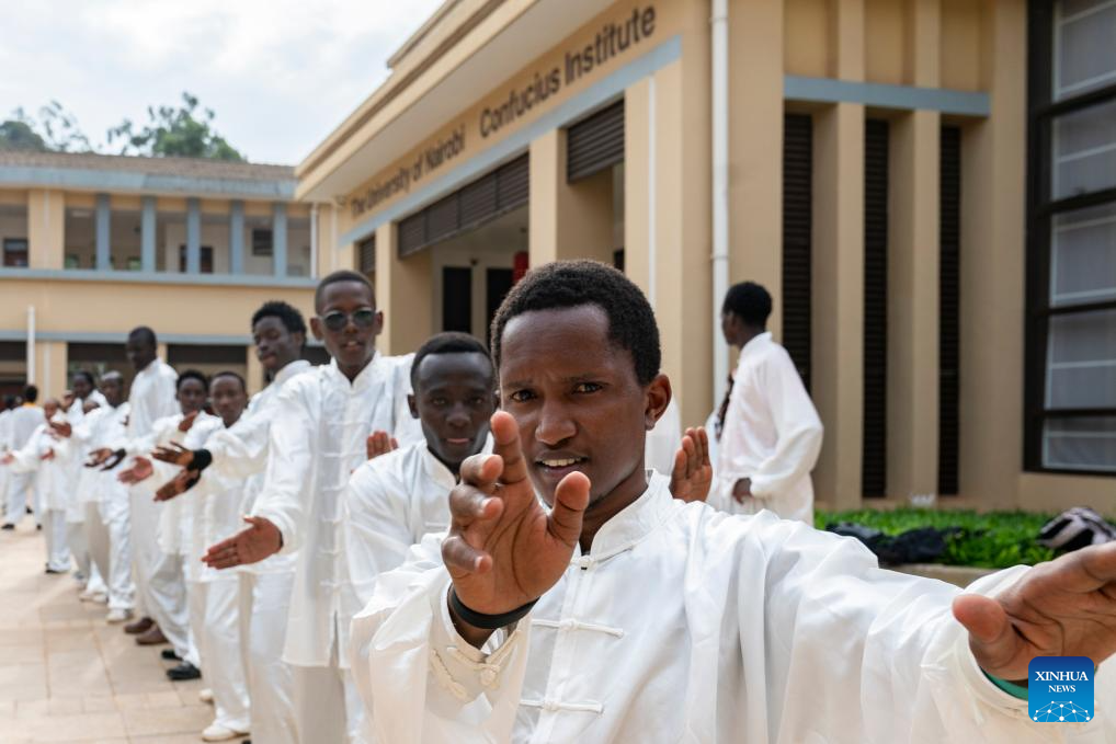 NAIROBI, 19 marzo, 2026 (Xinhua) -- Imagen del 18 de marzo de 2026 de estudiantes practicando Taijiquan, un tipo de arte marcial tradicional chino, en el Instituto Confucio de la Universidad de Nairobi, en Nairobi, Kenia. Con motivo del primer Día Internacional del Taijiquan, el Instituto Confucio de la Universidad de Nairobi promovió la cultura tradicional china e impulsó el intercambio cultural entre China y Kenia mediante la enseñanza de la historia y los antecedentes culturales del Taijiquan, así como la organización de estudiantes para aprender y practicar este arte marcial. El 5 de noviembre de 2025, la Organización de las Naciones Unidas para la Educación, la Ciencia y la Cultura (UNESCO) adoptó una resolución en su 43 sesión de la Conferencia General, designando el 21 de marzo, equinoccio de primavera en el hemisferio norte, como Día Internacional del Taijiquan. (Xinhua/Xie Jianfei)