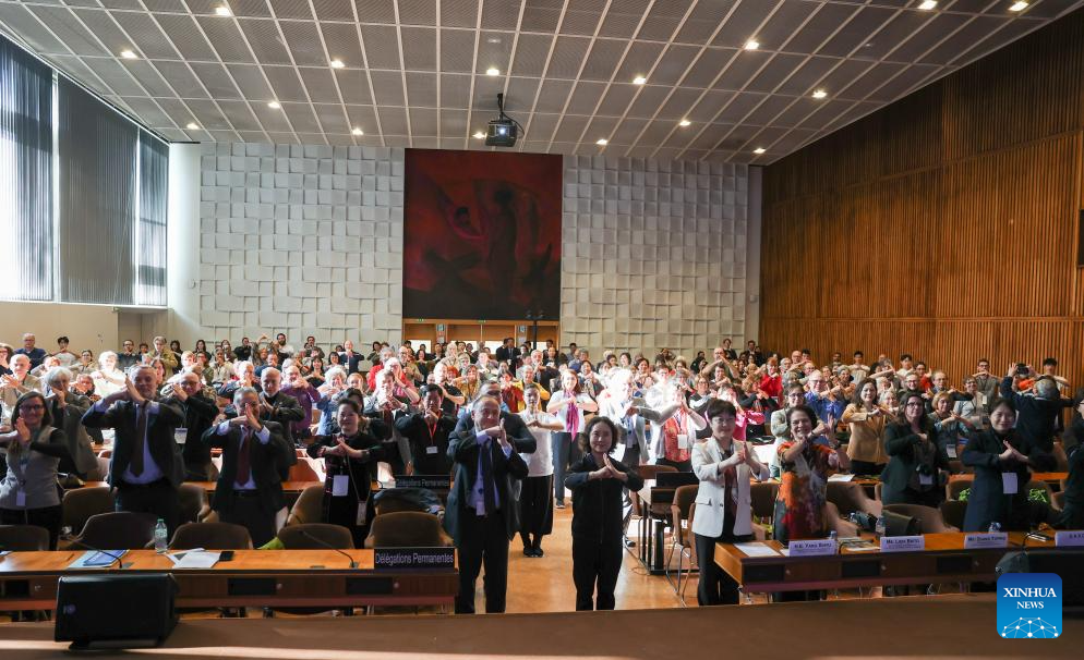PARIS, 19 marzo, 2026 (Xinhua) -- Imagen del 18 de marzo de 2026 de invitados posando para fotografías durante el evento de celebración, en París, Francia. Una celebración previa al primer Día Internacional del Taijiquan, que se celebrará el 21 de marzo, se llevó a cabo el miércoles en la sede de la Organización de las Naciones Unidas para la Educación, la Ciencia y la Cultura (UNESCO, por sus siglas en inglés) en París, bajo el lema "En forma para la vida, Ve por el taiji". (Xinhua/Wu Huiwo)
