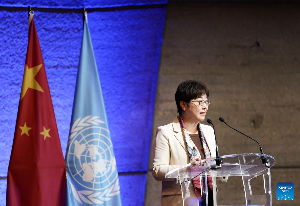 PARIS, 19 marzo, 2026 (Xinhua) -- Imagen del 18 de marzo de 2026 de Yang Xinyu, embajadora y delegada permanente de China ante la Organización de las Naciones Unidas para la Educación, la Ciencia y la Cultura (UNESCO, por sus siglas en inglés), hablando durante el evento de celebración, en París, Francia. Una celebración previa al primer Día Internacional del Taijiquan, que se celebrará el 21 de marzo, se llevó a cabo el miércoles en la sede de la UNESCO en París, bajo el lema "En forma para la vida, Ve por el taiji". (Xinhua/Wu Huiwo)
