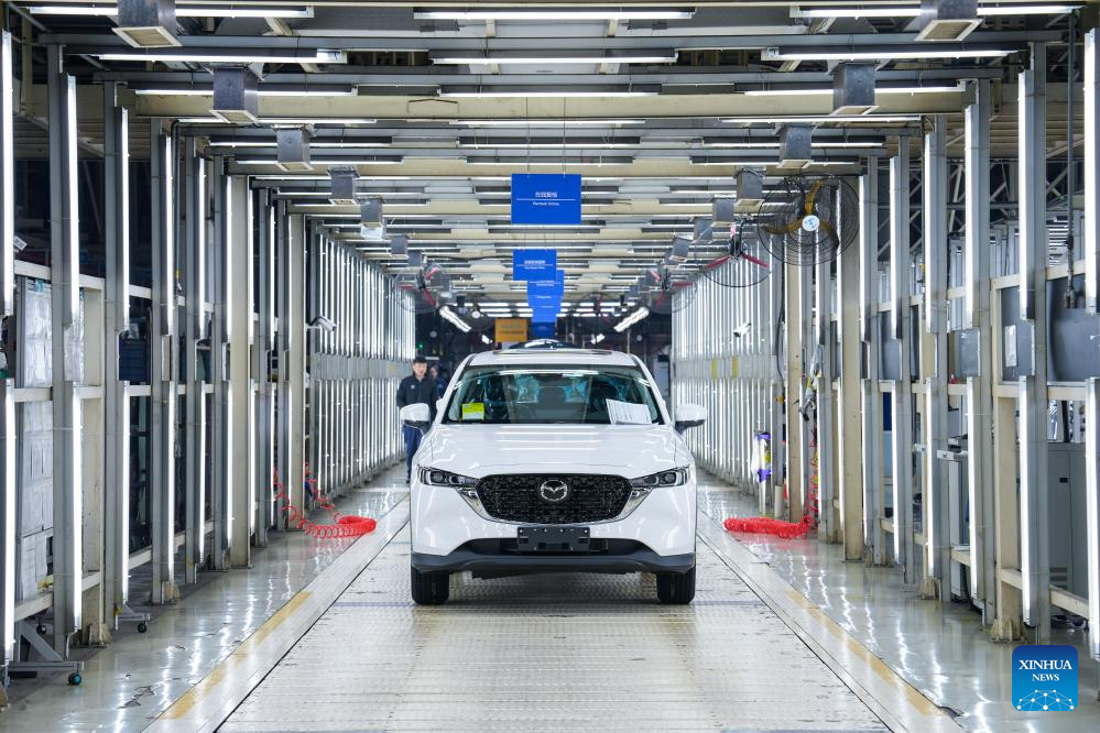 NANJING, 19 marzo, 2026 (Xinhua) -- Imagen del 17 de marzo de 2026 de empleados trabajando en una línea de producción en un taller de Changan Mazda, en Nanjing, en la provincia de Jiangsu, en el este de China. En los últimos años, Jiangsu, un importante centro de fabricación de automóviles en China, ha acelerado el crecimiento de su industria automotriz mediante una estrecha coordinación entre los fabricantes de vehículos y los proveedores de autopartes. (Xinhua/Ji Chunpeng)