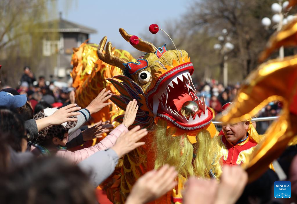 BEIJING, 20 marzo, 2026 (Xinhua) -- La audiencia interactúa con artistas de la danza del dragón en un parque, en Tianjin, en el norte de China, el 20 de marzo de 2026. El equinoccio de primavera cae el 20 de marzo. Este año, también marca el Longtaitou, conocido como el Día del Dragón que Levanta la Cabeza, una ocasión importante en el calendario lunar, que se celebra con diversas actividades en toda China. (Xinhua/Sun Fanyue)