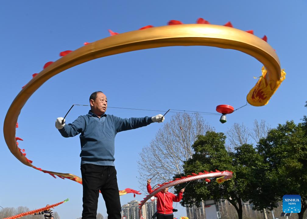 BEIJING, 20 marzo, 2026 (Xinhua) -- Artistas realizan una presentación de la danza de dragón en un parque, en Tianjin, en el norte de China, el 20 de marzo de 2026. El equinoccio de primavera cae el 20 de marzo. Este año, también marca el Longtaitou, conocido como el Día del Dragón que Levanta la Cabeza, una ocasión importante en el calendario lunar, que se celebra con diversas actividades en toda China. (Xinhua/Sun Fanyue)