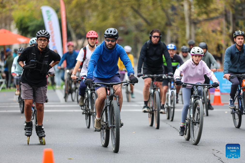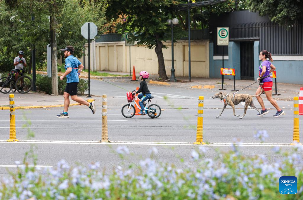 SANTIAGO, 23 marzo, 2026 (Xinhua) -- Imagen del 22 de marzo de 2026 de personas participando en el evento "Domingo sin automóviles", en Santiago, capital de Chile. Durante el evento, algunas calles de la capital chilena se convirtieron en zonas libres de automóviles desde las 9:00 hasta las 14:00, hora local, con vehículos motorizados prohibidos. (Xinhua/Zhou Jiayi)