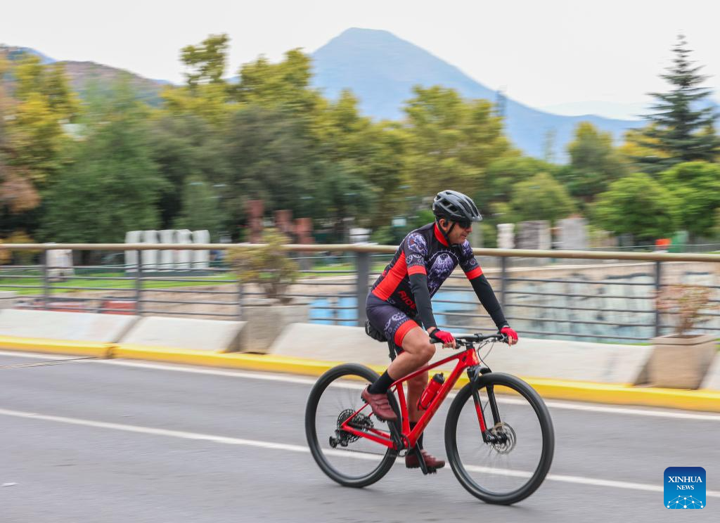 SANTIAGO, 23 marzo, 2026 (Xinhua) -- Imagen del 22 de marzo de 2026 de un hombre participando en el evento "Domingo sin automóviles", en Santiago, capital de Chile. Durante el evento, algunas calles de la capital chilena se convirtieron en zonas libres de automóviles desde las 9:00 hasta las 14:00, hora local, con vehículos motorizados prohibidos. (Xinhua/Zhou Jiayi)