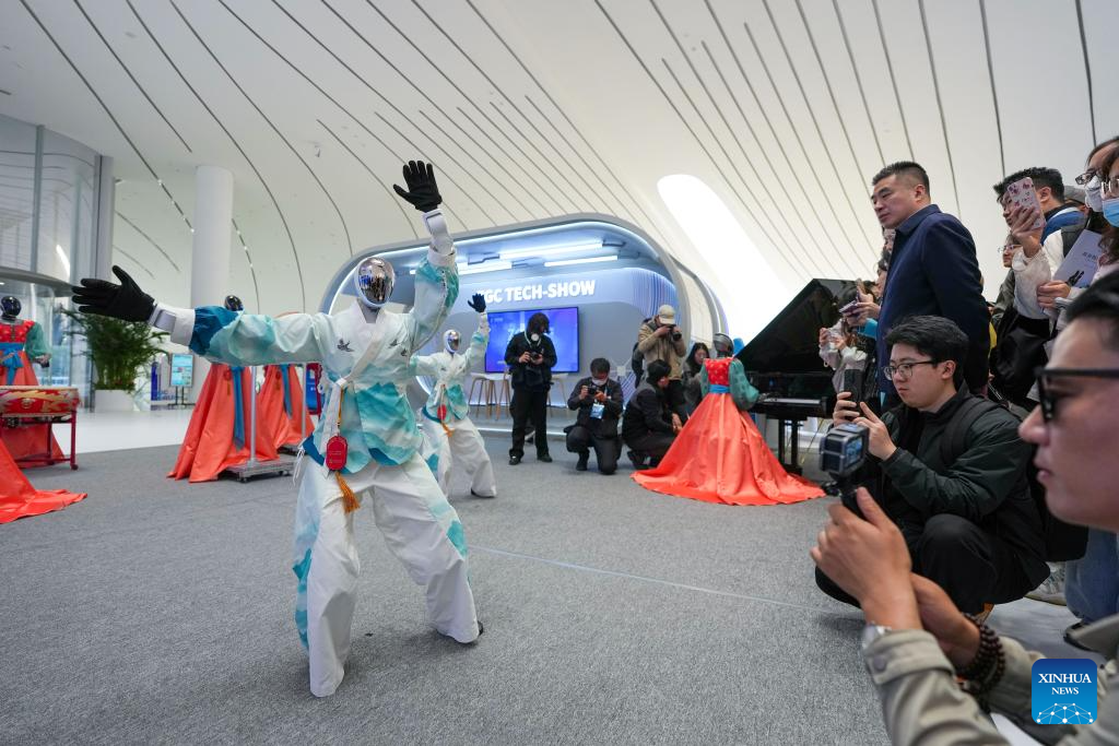 BEIJING, 24 marzo, 2026 (Xinhua) -- Robots humanoides realizan una presentación en el Centro Internacional de Innovación de Zhongguancun, en Beijing, capital de China, el 24 de marzo de 2026. Bajo el lema "Integración total entre la innovación tecnológica y la industrial", el Foro Zhongguancun de este año se llevará a cabo en Beijing del 25 al 29 de marzo y se espera que la cifra de invitados participantes, procedentes de más de 100 países y regiones, sea superior a 1.000 y contará con alrededor de 100 eventos. (Xinhua/Ju Huanzong)