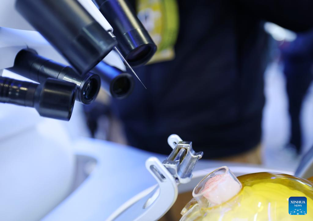 BEIJING, 24 marzo, 2026 (Xinhua) -- Imagen del 24 de marzo de 2026 de un sistema de interfaz cerebro-ordenador invasiva de alto rendimiento en el Centro de Exposiciones de Zhongguancun, en Beijing, capital de China. Bajo el lema "Integración total entre la innovación tecnológica y la industrial", el Foro Zhongguancun de este año se llevará a cabo en Beijing del 25 al 29 de marzo y se espera que la cifra de invitados participantes, procedentes de más de 100 países y regiones, sea superior a 1.000 y contará con alrededor de 100 eventos. (Xinhua/Zhang Chenlin)