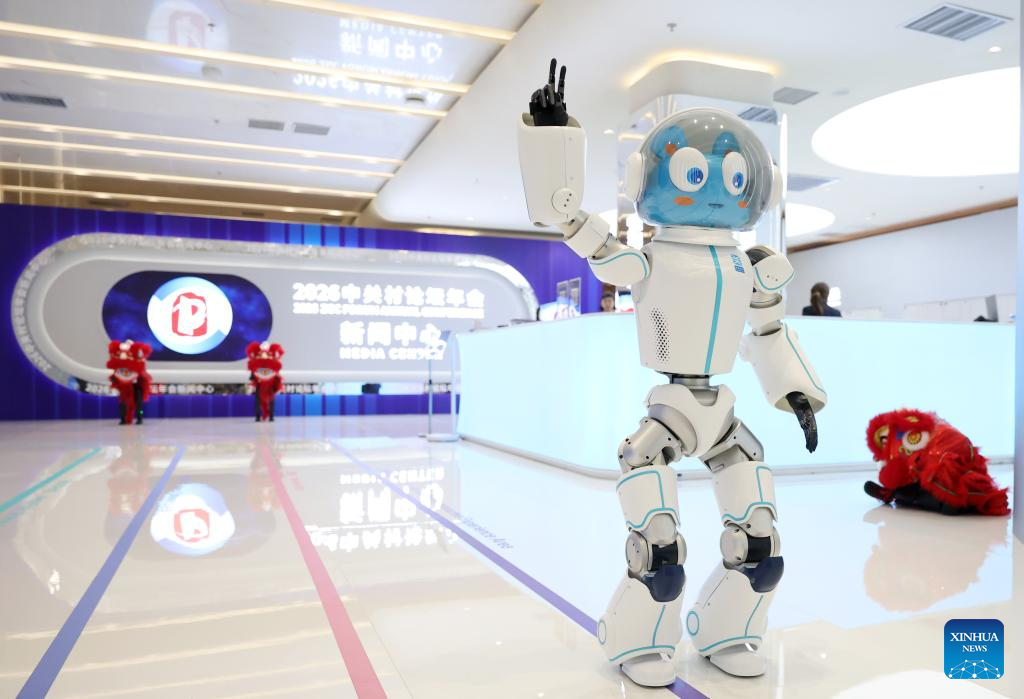 BEIJING, 24 marzo, 2026 (Xinhua) -- Un robot saluda al público en el centro de prensa del Foro Zhongguancun 2026 (Foro ZGC), en Beijing, capital de China, el 24 de marzo de 2026. Bajo el lema "Integración total entre la innovación tecnológica y la industrial", el Foro ZGC de este año se llevará a cabo en Beijing del 25 al 29 de marzo y se espera que la cifra de invitados participantes, procedentes de más de 100 países y regiones, sea superior a 1.000 y contará con alrededor de 100 eventos. (Xinhua/Zhang Chenlin)