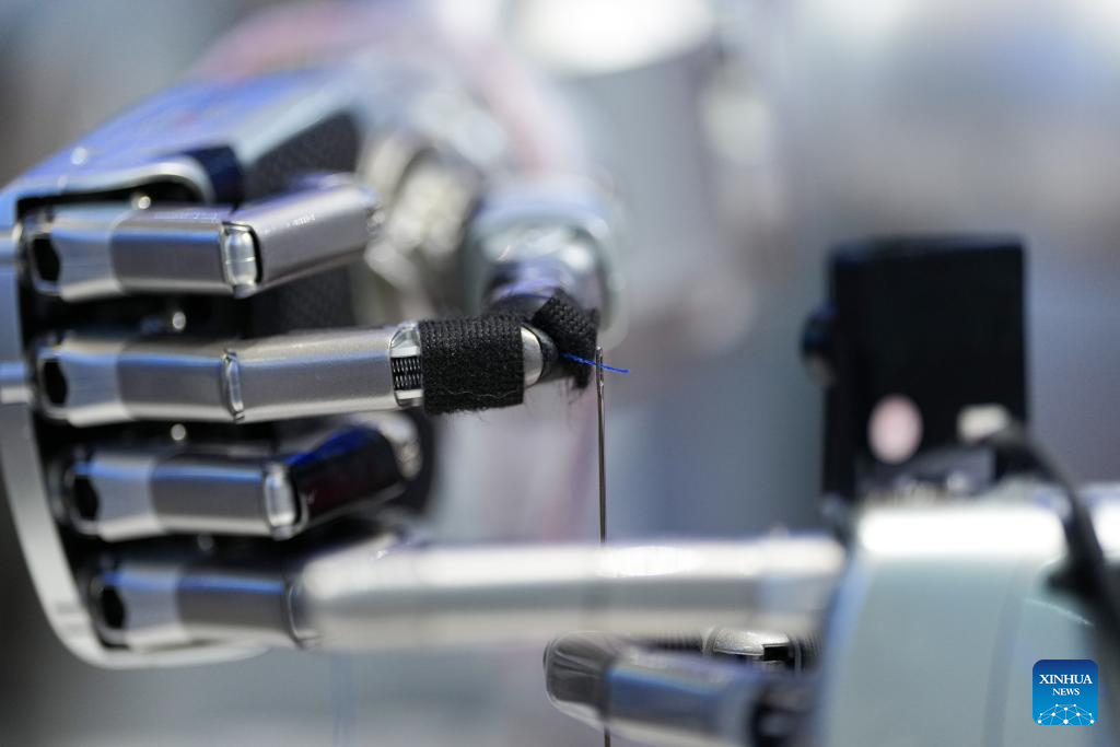 BEIJING, 24 marzo, 2026 (Xinhua) -- Un robot realiza una demostración de enhebrado en el Centro de Exposiciones de Zhongguancun, en Beijing, capital de China, el 24 de marzo de 2026. Bajo el lema "Integración total entre la innovación tecnológica y la industrial", el Foro Zhongguancun de este año se llevará a cabo en Beijing del 25 al 29 de marzo y se espera que la cifra de invitados participantes, procedentes de más de 100 países y regiones, sea superior a 1.000 y contará con alrededor de 100 eventos. (Xinhua/Ju Huanzong)