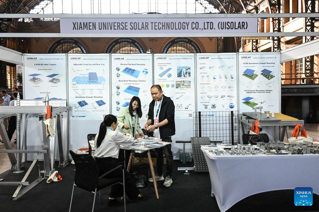 SANTIAGO, 25 marzo, 2026 (Xinhua) -- Expositores participan en RE+ Cono Sur 2026 en el Centro Cultural Estación Mapocho, en Santiago, capital de Chile, el 25 de marzo de 2026. Autoridades chilenas llamaron el miércoles a buscar oportunidades en las energías renovables en el contexto de la crisis energética global, agravada por el conflicto en Medio Oriente, durante la apertura de RE+ Cono Sur 2026, un encuentro de energías limpias que se organiza por primera vez en Sudamérica. (Xinhua/Jorge Villegas)
