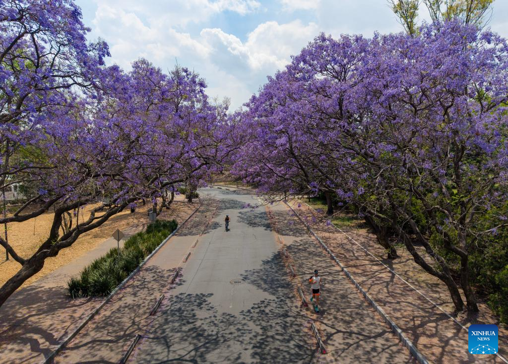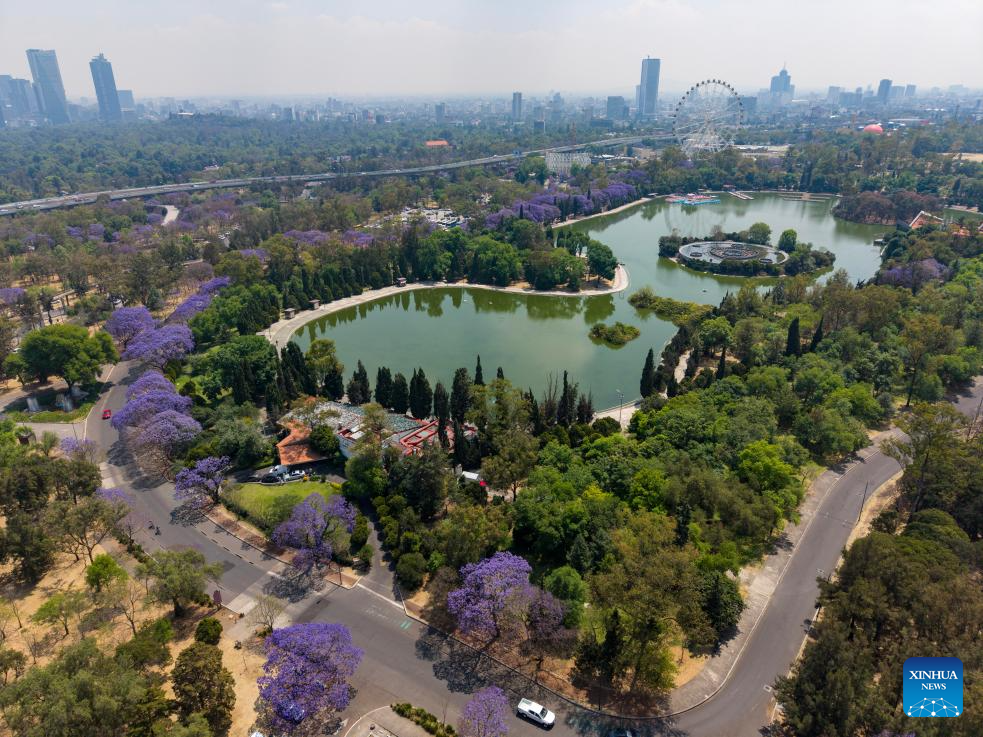 CIUDAD DE MEXICO, 26 marzo, 2026 (Xinhua) -- Vista aérea tomada con un dron el 24 de marzo de 2026 de árboles de jacaranda en el Bosque de Chapultepec, en la Ciudad de México, capital de México. (Xinhua/Qi Xiaoyi)