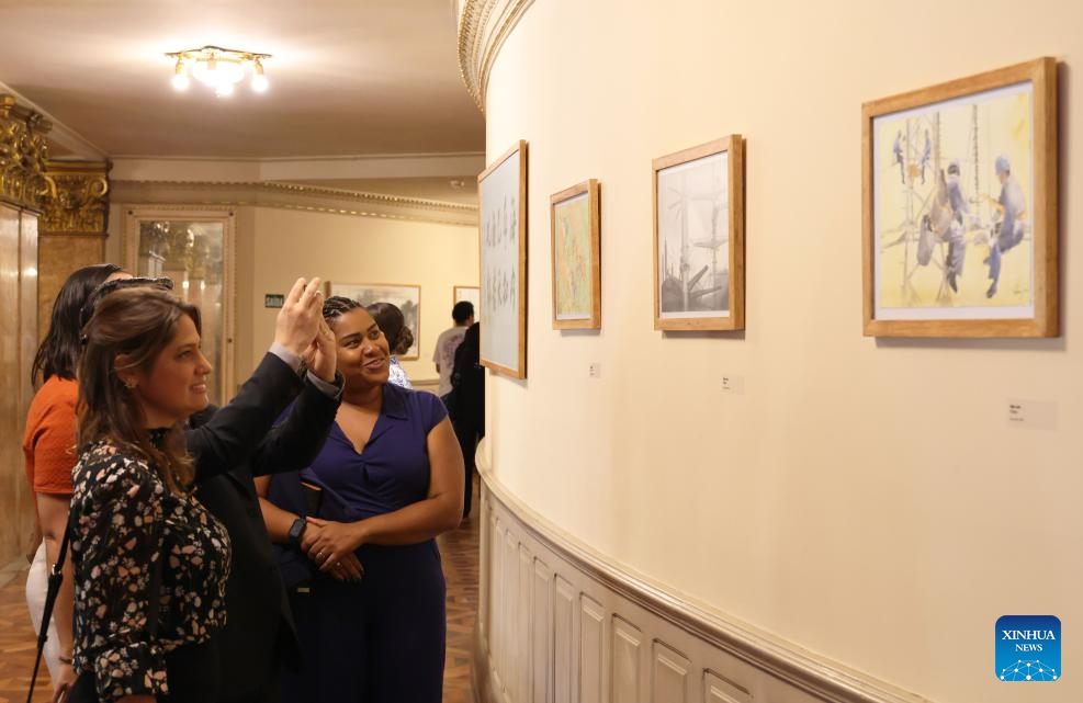 RIO DE JANEIRO, 26 marzo, 2026 (Xinhua) -- Imagen del 25 de marzo de 2026 de visitantes observando pinturas brasileñas en una exposición de caligrafía y pintura chino-brasileña en el Teatro Municipal de Río de Janeiro, Brasil. La exposición, titulada "Horizontes en Diálogo", fue inaugurada el miércoles en Río de Janeiro. (Xinhua/Jin Haoyuan)