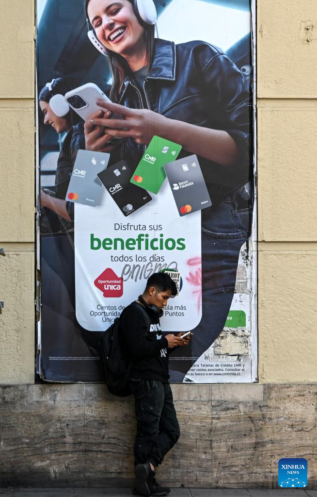 SANTIAGO, 27 marzo, 2026 (Xinhua) -- Imagen del 23 de marzo de 2026 de un estudiante revisando su teléfono móvil en una calle, en Santiago, capital de Chile. En Chile arrancó la regulación de dispositivos móviles en los colegios, en especial los celulares, una medida que busca recuperar la concentración y el vínculo humano en las aulas, lo que para expertos es una oportunidad para orientar su uso correcto en niños y adolescentes. (Xinhua/Jorge Villegas)