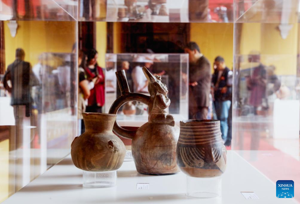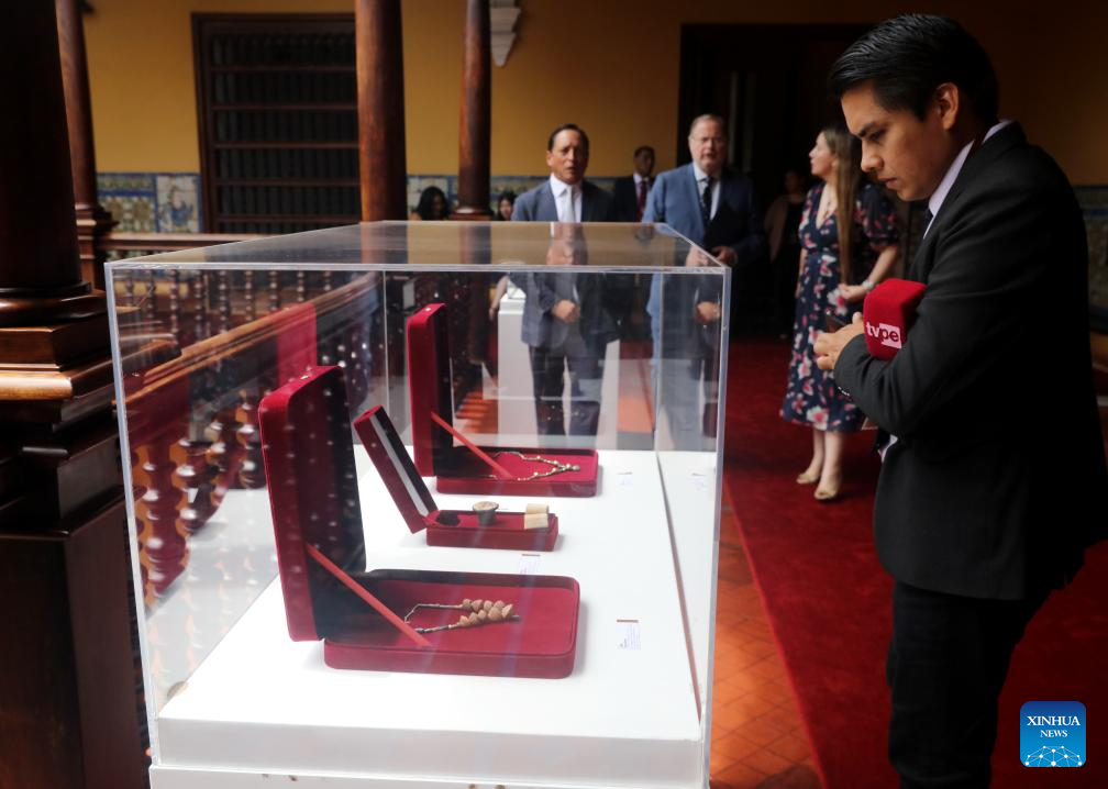 LIMA, 27 marzo, 2026 (Xinhua) -- Bienes culturales repatriados son vistos una ceremonia oficial de entrega de piezas patrimoniales, en Lima, Perú, el 27 de marzo de 2026. Perú recibió oficialmente el viernes un total de 169 bienes culturales repatriados desde 13 países de América, Europa y Asia, en la primera ceremonia oficial de entrega de piezas patrimoniales del año 2026, celebrada en la sede de la cancillería de Lima. (Xinhua/Mariana Bazo)