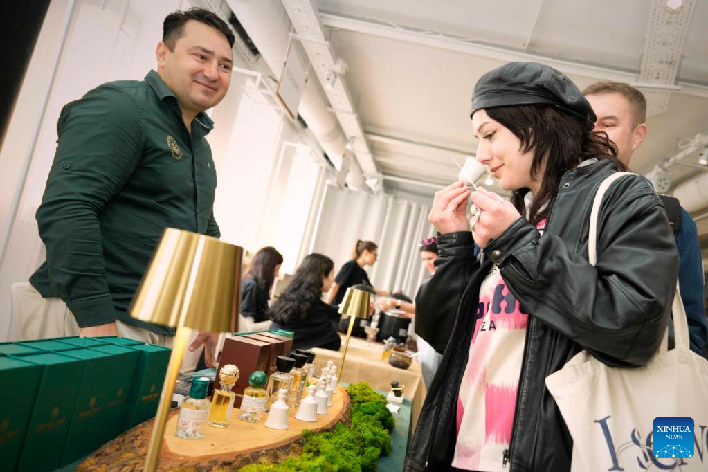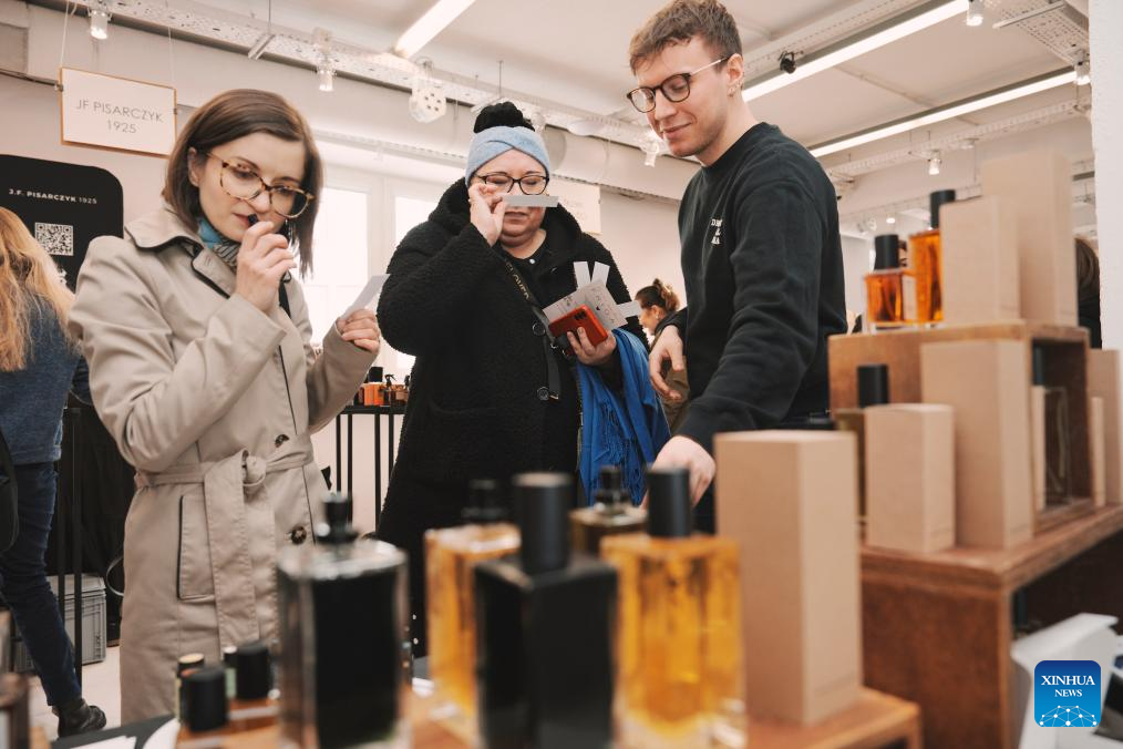 VARSOVIA, 29 marzo, 2026 (Xinhua) -- Imagen del 28 de marzo de 2026 de visitantes oliendo muestras de fragancia durante la Feria de Aromas y Fragancias, en Varsovia, Polonia. Múltiples fabricantes de perfumes, productos de aromaterapia y aceites esenciales participaron en el evento. (Xinhua/Jaap Arriens)