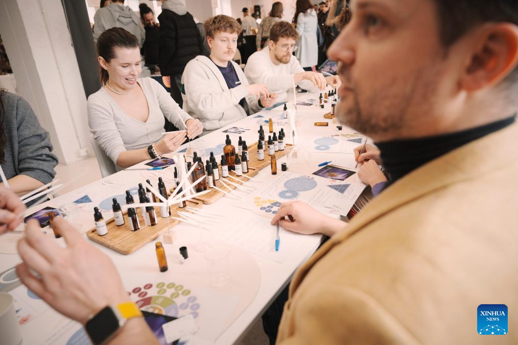 VARSOVIA, 29 marzo, 2026 (Xinhua) -- Imagen del 28 de marzo de 2026 de participantes fabricando sus propias fragancias en la Feria de Aromas y Fragancias, en Varsovia, Polonia. Múltiples fabricantes de perfumes, productos de aromaterapia y aceites esenciales participaron en el evento. (Xinhua/Jaap Arriens)