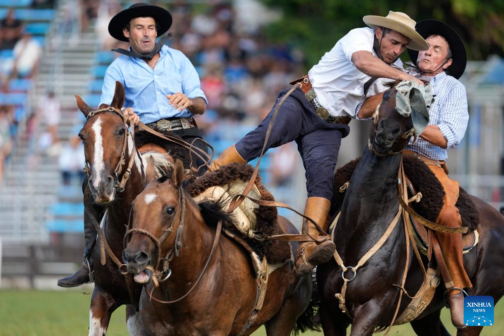 MONTEVIDEO, 30 marzo, 2026 (Xinhua) -- Gauchos participan en las jineteadas durante la 99 edición de la Semana Criolla del Prado, en el rodeo de la Rural del Prado, en Montevideo, capital de Uruguay, el 30 de marzo de 2026. (Xinhua/Nicolás Celaya)