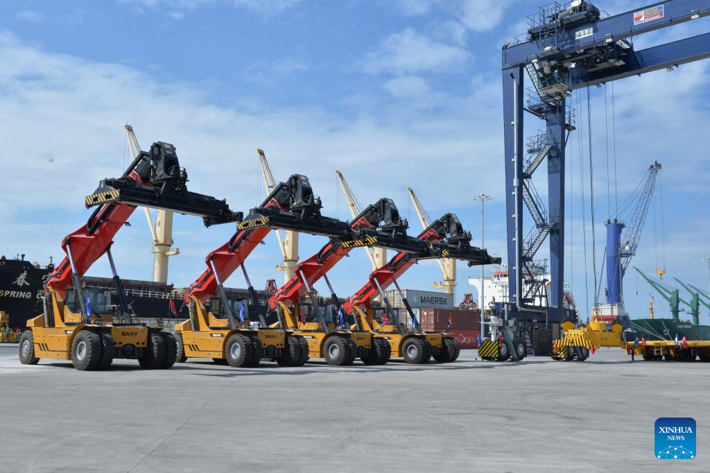 CORINTO, 30 marzo, 2026 (Xinhua) -- Imagen del 25 de marzo de 2026 de nueva maquinaria en una terminal portuaria, en Corinto, Nicaragua. Nicaragua modernizó su principal puerto en el Pacífico, Corinto, con ayuda financiera y técnica de China, en un esfuerzo por ampliar su capacidad logística y fortalecer su inserción en el comercio global. (Xinhua/Noelia Aráuz)