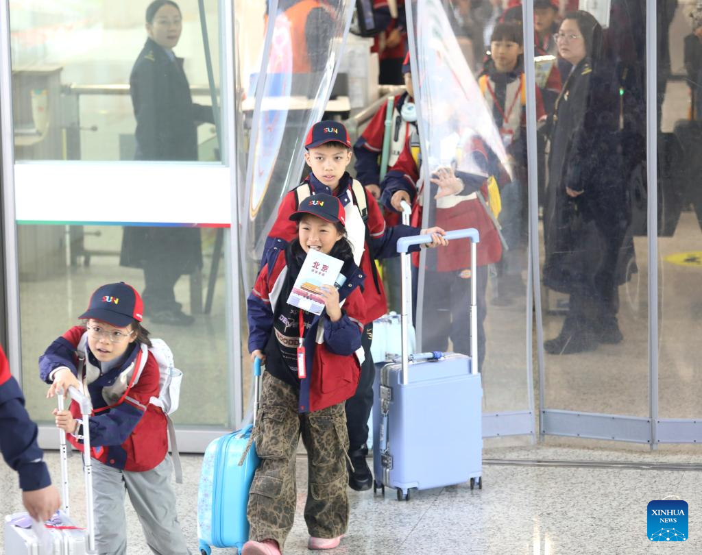 BEIJING, 1 abril, 2026 (Xinhua) -- Estudiantes se forman para un viaje en la Estación del Ferrocarril del Norte de Changzhou, en Changzhou, en la provincia de Jiangsu, en el este de China, el 1 de abril de 2026. A medida que la primavera florece en China, los estudiantes de escuelas primarias y secundarias de varias regiones se preparan para sus primeras vacaciones de primavera, en las que saldrán del aula para viajar y participar en una amplia gama de actividades. (Xinhua/Chen Wei)