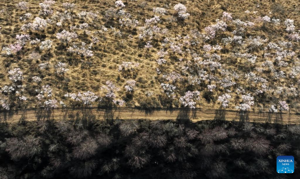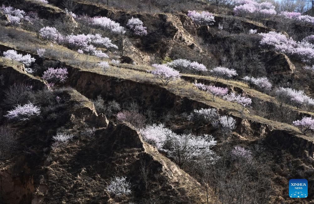 YAN'AN, 1 abril, 2026 (Xinhua) -- Imagen del 31 de marzo de 2026 de árboles en flor, en el poblado de Pingqiao del distrito de Ansai, en Yan'an, en la provincia de Shaanxi, en el noroeste de China. (Xinhua/Qi Xiaojun)