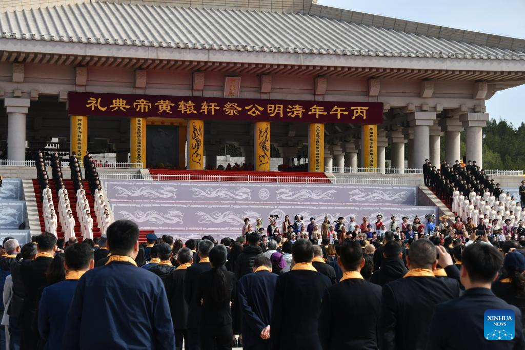 HUANGLING, 5 abril, 2026 (Xinhua) -- Una ceremonia en homenaje a Huangdi, o el Emperador Amarillo, se lleva a cabo en el distrito de Huangling, en la provincia de Shaanxi, en el noroeste de China, el 5 de abril de 2026. Una ceremonia se celebró el domingo para rendir homenaje a Huangdi, quien es considerado como el fundador de la civilización china y ancestro común de todos los chinos. La ceremonia se celebra tradicionalmente en Qingming, o Día de la Limpieza de Tumbas, que este año cae en domingo. (Xinhua/Yao Youming)