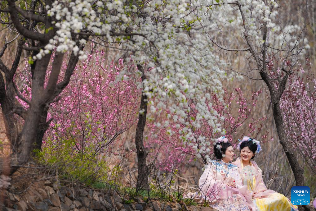 BEIJING, 5 abril, 2026 (Xinhua) -- Imagen del 31 de marzo de 2026 de turistas con vestimenta tradicional china disfrutando de su tiempo libre, en Zouping, en la provincia de Shandong, en el este de China. El Festival de Qingming, o Día de la Limpieza de Tumbas, se celebra este año el 5 de abril. Es un festival tradicional chino en el que las personas rinden homenaje a los muertos y veneran a sus antepasados. La festividad también ofrece un breve descanso para que los ciudadanos chinos realicen actividades al aire libre y turismo. (Xinhua/Dong Naide)