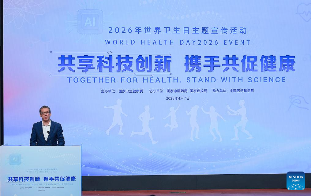 BEIJING, 7 abril, 2026 (Xinhua) -- Martin Taylor, representante de la Organización Mundial de la Salud en China, habla durante el Evento del Día Mundial de la Salud 2026, en Beijing, capital de China, el 7 de abril de 2026. El Evento del Día Mundial de la Salud 2026 fue llevado a cabo aquí el martes por la Comisión Nacional de la Salud. (Xinhua/Zhang Yuwei)