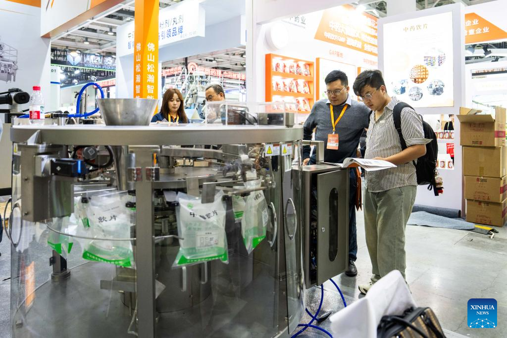 CHANGSHA, 10 abril, 2026 (Xinhua) -- Un visitante (d) aprende sobre un dispositivo de empaquetado de medicina automatizado en la Exposición Agrícola de Medicina China en el Centro Internacional de Convenciones y Exposiciones de Hunan, en Changsha, en la provincia de Hunan, en el centro de China, el 10 de abril de 2026. Con un área de exposición total de 20.000 metros cuadrados, la primera edición de la Exposición Agrícola de Medicina China comenzó aquí el viernes, reuniendo a más de 300 expositores de todo el país. (Xinhua/Chen Sihan)