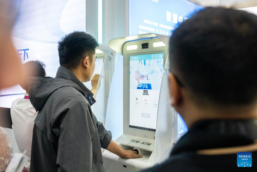 CHANGSHA, 10 abril, 2026 (Xinhua) -- Un visitante aprende sobre un dispositivo inteligente de diagnóstico en la Exposición Agrícola de Medicina China en el Centro Internacional de Convenciones y Exposiciones de Hunan, en Changsha, en la provincia de Hunan, en el centro de China, el 10 de abril de 2026. Con un área de exposición total de 20.000 metros cuadrados, la primera edición de la Exposición Agrícola de Medicina China comenzó aquí el viernes, reuniendo a más de 300 expositores de todo el país. (Xinhua/Chen Sihan)