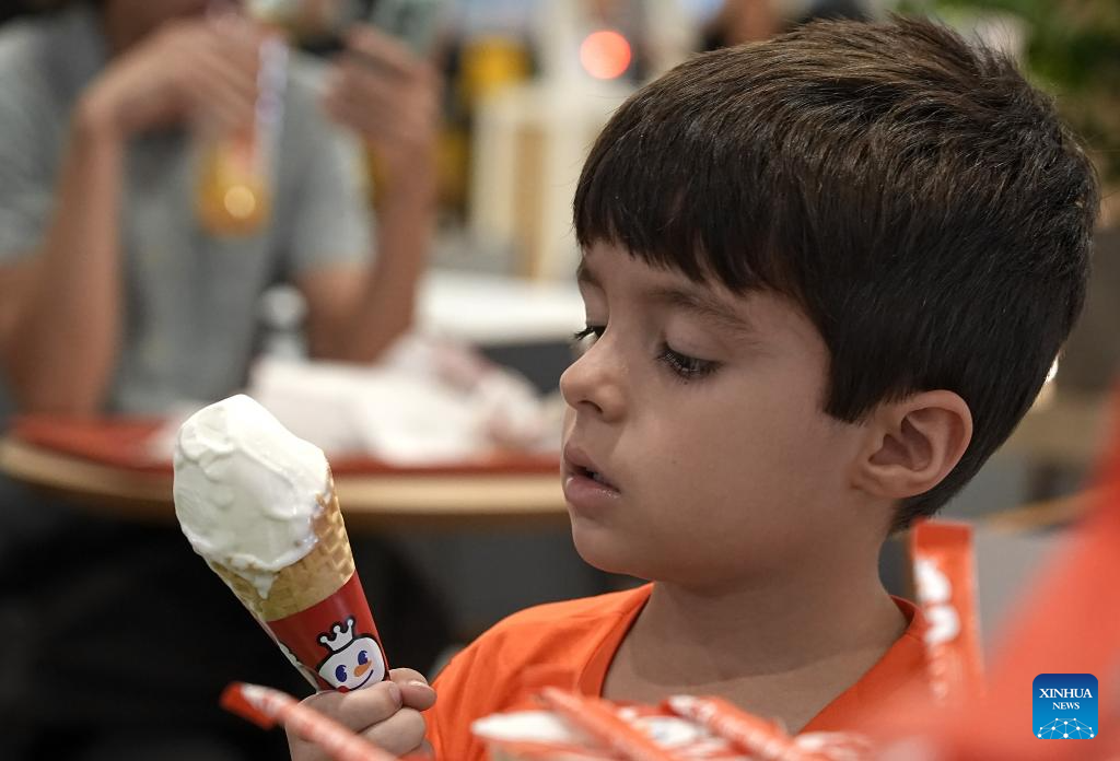 SAO PAULO, 11 abril, 2026 (Xinhua) -- Un niño degusta un helado en la primera tienda china Mixue en Brasil durante su inauguración en un centro comercial, en Sao Paulo, Brasil, el 11 de abril de 2026. Mixue abrió su primera tienda en Brasil y según un representante de la empresa también comenzará la construcción de una fábrica para su cadena de suministro en el país. Se espera que genere 25.000 empleos en el futuro. (Xinhua/Paulo Lopes)