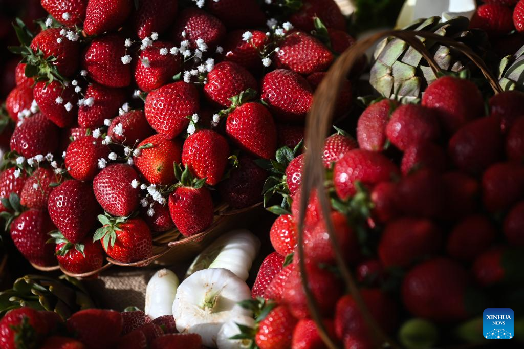 MGARR, 12 abril, 2026 (Xinhua) -- Fresas frescas son vistas durante el festival de la fresa, en Mgarr, Malta, el 12 abril de 2026. Malta llevó a cabo su festival anual de la fresa en Mgarr el domingo. (Xinhua/Jonathan Borg)