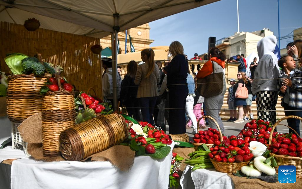 MGARR, 12 abril, 2026 (Xinhua) -- Personas visitan el festival de la fresa, en Mgarr, Malta, el 12 abril de 2026. Malta llevó a cabo su festival anual de la fresa en Mgarr el domingo. (Xinhua/Jonathan Borg)