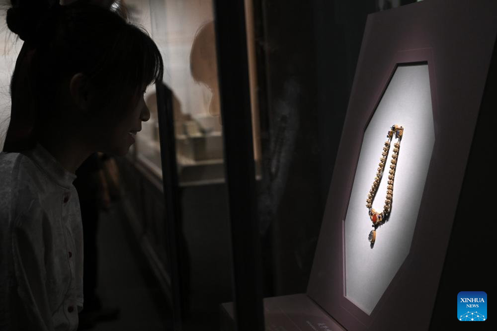 BEIJING, 13 abril, 2026 (Xinhua) -- Una visitante observa la exposición "Una mirada a la China de los siglos VI-VII: Descubrimientos en la tumba de Li Jingxun" en el Museo Nacional de China, en Beijing, capital de China, el 13 de abril de 2026. La exposición, que aún está en curso, presenta reliquias desenterradas de la tumba de Li Jingxun, una joven princesa que murió en el año 608, y reliquias clave descubiertas recientemente que abarcan desde las dinastías del Norte y del Sur (420-589) hasta la dinastía Sui (581-618). (Xinhua/Jin Liangkuai)