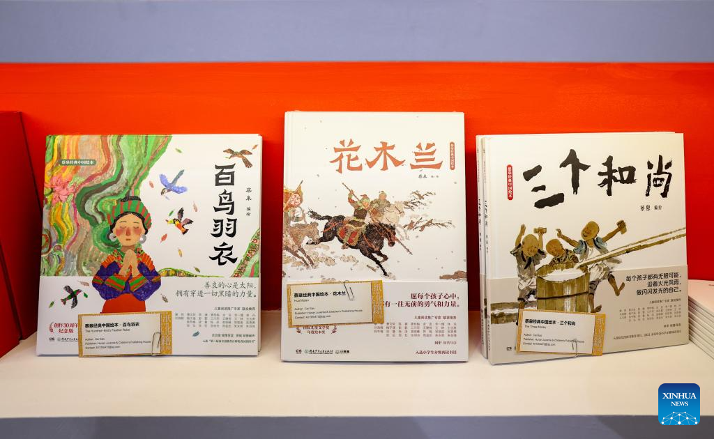 Imagen del 13 de abril de 2026 de libros ilustrados por Cai Gao en la Feria del Libro Infantil de Bolonia, en Bolonia, Italia. La ilustradora china, Cai Gao, ganó el Premio Hans Christian Andersen 2026, cuyo anuncio fue hecho el lunes en la Feria del Libro Infantil de Bolonia, en Italia. (Xinhua/Wang Kaiyan)