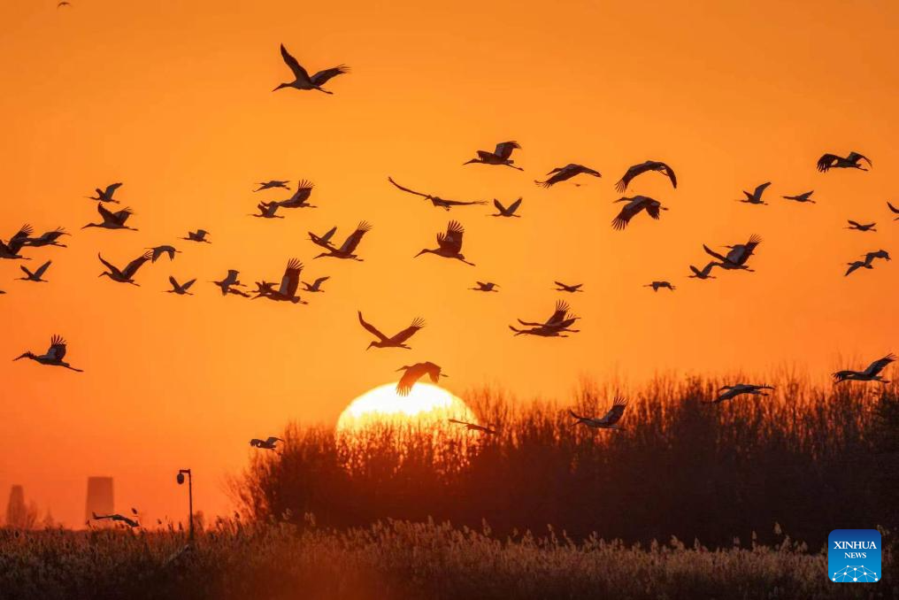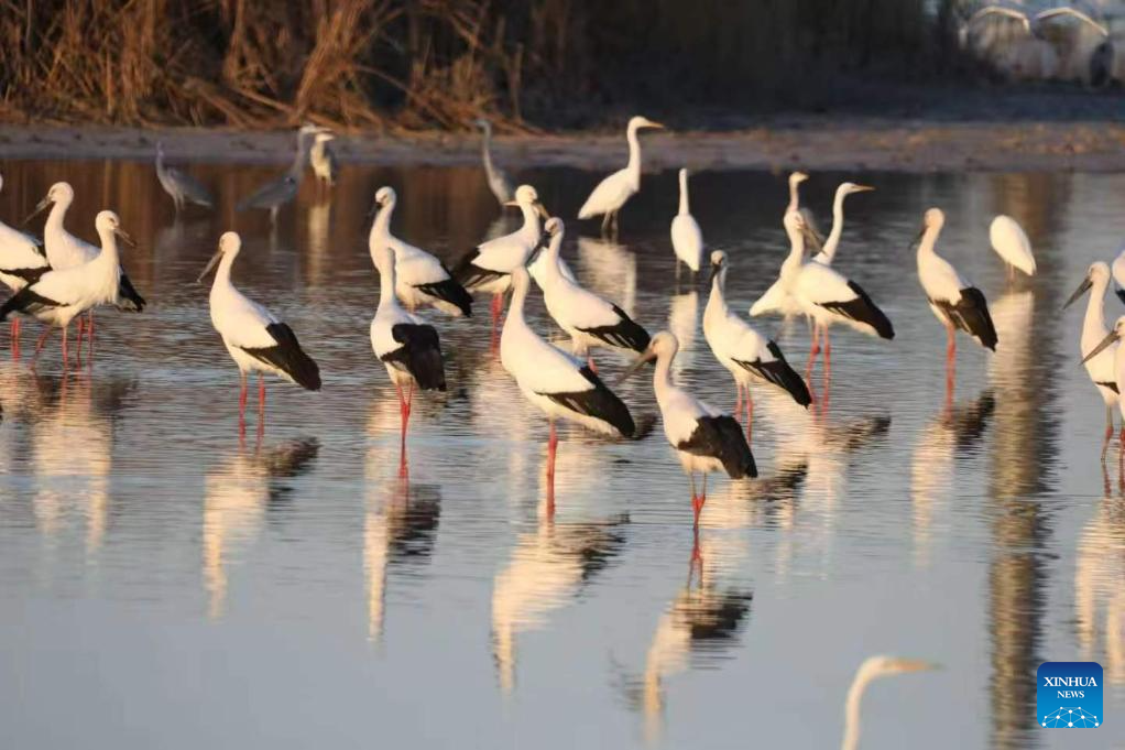 TIANJIN, 13 abril, 2026 (Xinhua) -- Imagen de noviembre de 2025 de aves migratorias en el Humedal Qilihai, en la municipalidad de Tianjin, en el norte de China. En 2017, las autoridades locales pusieron en marcha una campaña a gran escala para la restauración de humedales, demoliendo edificios ilegales, reduciendo las actividades humanas y reconectando los sistemas de agua. (Xinhua)