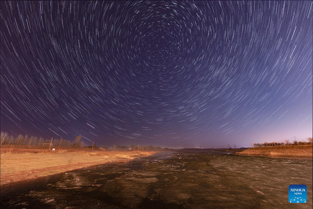 HARBIN, 14 abril, 2026 (Xinhua) -- Imagen compuesta del 14 de abril de 2026 del hielo a la deriva flotando bajo el cielo estrellado en la sección de Harbin del río Songhua, en la provincia de Heilongjiang, en el noreste de China. Gran cantidad de hielo flota sobre la superficie del río Heilongjiang y el río Songhua recientemente debido al aumento de la temperatura. (Xinhua/Liu Dapeng)