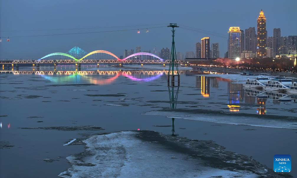 HARBIN, 14 abril, 2026 (Xinhua) -- Imagen del 13 de abril de 2026 de niños disfrutando de la vista del hielo a la deriva que flota en la sección de Jiamusi del río Songhua, en la provincia de Heilongjiang, en el noreste de China. Gran cantidad de hielo flota sobre la superficie del río Heilongjiang y el río Songhua recientemente debido al aumento de la temperatura. (Xinhua/Zhu Zongqiang)